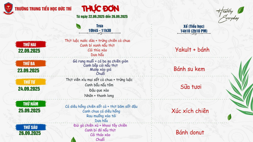 Thực đơn tuần 25